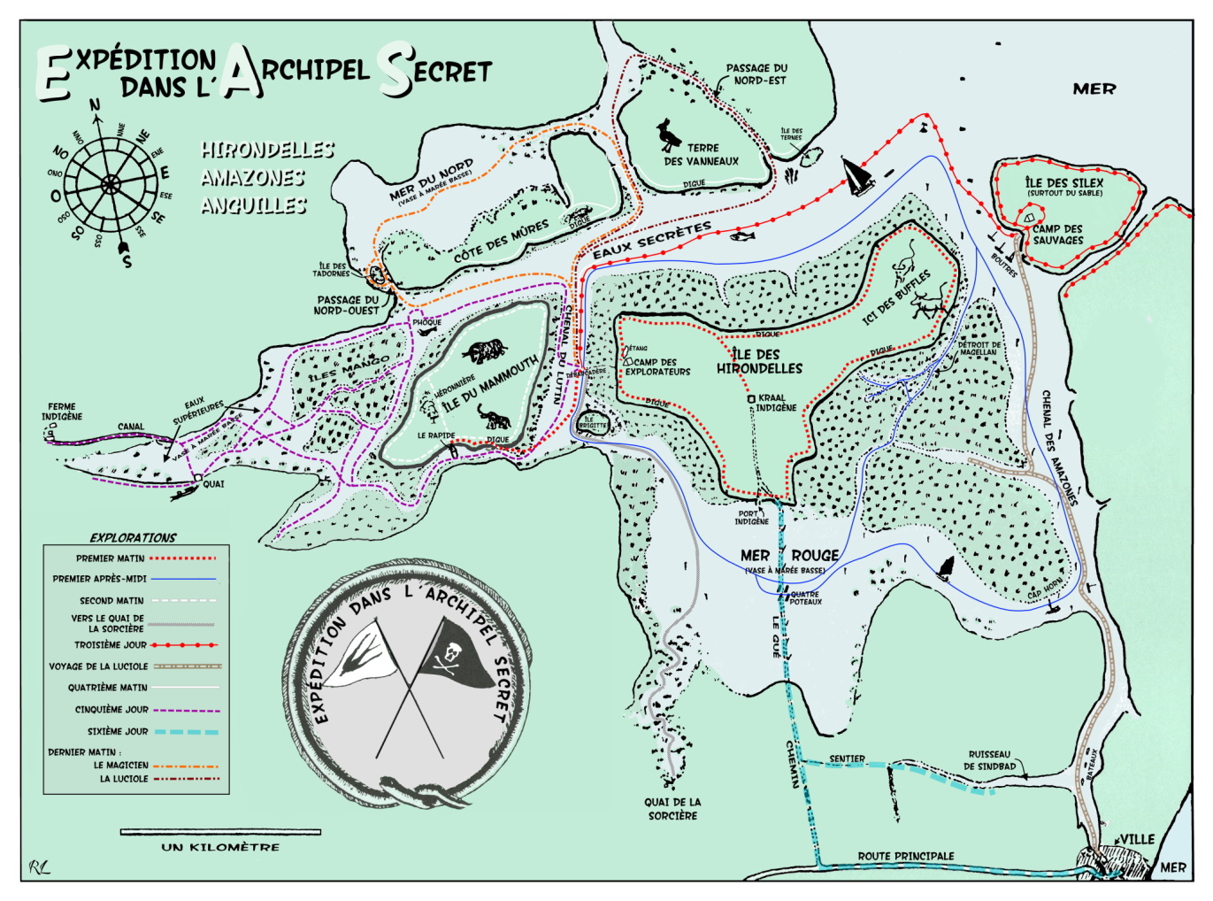 Il leur propose alors d’être “abandonnés” dans un ensemble composé d’îles intra-côtières et de vasières, avec juste une carte vierge très sommaire et un petit canot à voile, avec pour mission d’explorer et de cartographier l’ensemble. Et, pour leur faire une surprise, il a arrangé secrètement la venue de leurs amies les Amazones depuis leur maison de la région des lacs.