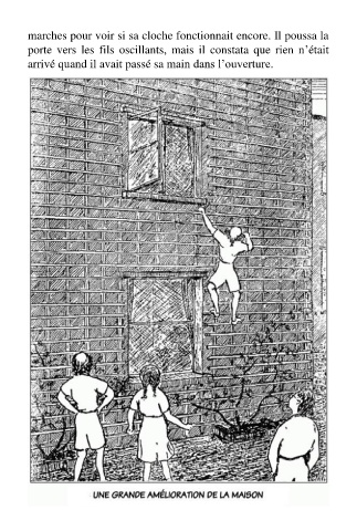 marches pour voir si sa cloche fonctionnait encore. Il poussa la porte vers les fils oscillants, mais il constata que rien n’était arrivé quand il avait passé sa main dans l’ouverture.